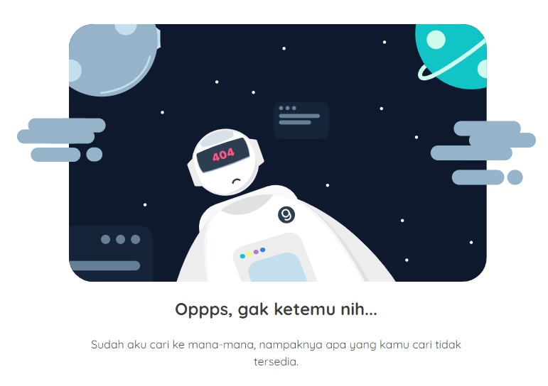 Ilustrasi juga dapat mengubah emosi pengguna. Misalnya ketika kita salah mengakses suatu halaman pada website, biasanya akan muncul halaman error dengan kode 404. Berikut ini adalah contohnya: