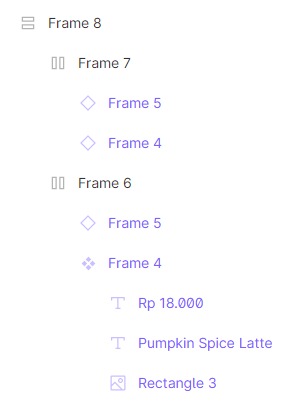 Karena desain daftar menu ini akan digunakan berulang kali, kira-kira apa yang harus dilakukan selanjutnya? Ya, betul! Kita akan membuatnya menjadi Components (Ctrl+Alt+K). Setelah selesai membuat Components, buat instance untuk menu kedua menggunakan Alt+Drag.