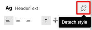 Ketika style diubah, keseluruhan teks yang menerapkan style tersebut juga akan berubah. Tentu ini akan memudahkan Anda ketika terjadi perubahan desain atau font yang digunakan. Keren, bukan?Bukan hanya itu saja, dengan menggunakan tipografi yang konsisten, aplikasi akan terlihat menyatu dan terhubung satu sama lain. Ini merupakan salah satu prinsip dari desain visual, yakni Unity. Jika Anda ingin melepaskan style pada suatu teks, tekan ikon “Detach style” pada sebelah kanan properti seperti ini:
