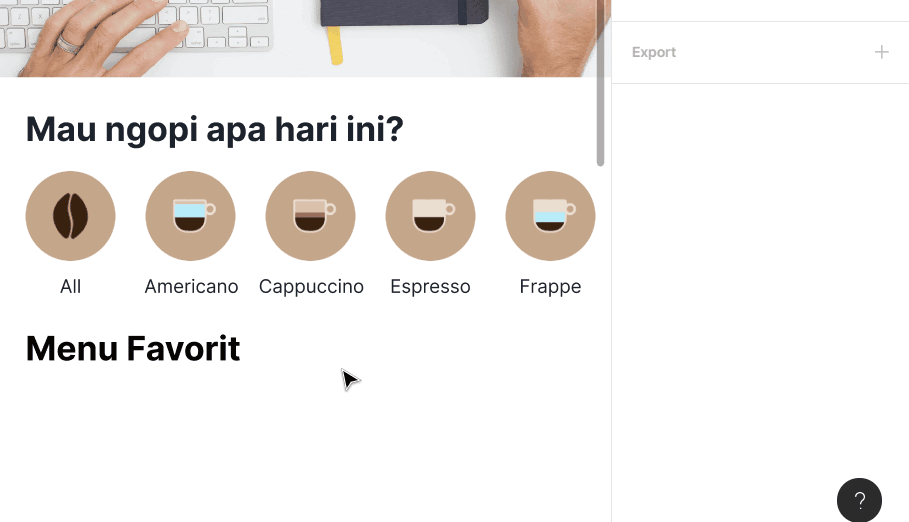 - Nah, di sini kita akan menyimpan pengaturan style pada teks “Mau ngopi apa hari ini?” dan menerapkannya pada teks “Menu Favorit”. Berikut urutan langkahnya: