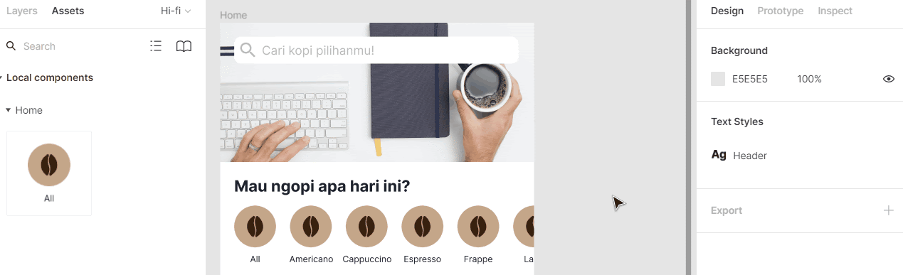 Untuk mengatur urutan dan jarak komponen dengan mudah, kita akan menggunakan salah satu fitur unggulan dari Figma, yakni Auto Layout. Caranya, pilih elemen yang ingin diatur kemudian klik ikon tambah (+) pada properti Auto Layout atau bisa juga dengan klik kanan dan pilih Add auto layout (Shift+A).