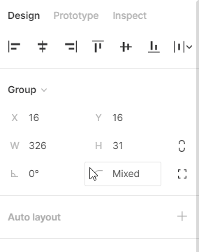 Seperti yang Anda lihat, ukuran ikon pencarian juga ikut membesar dan mengecil secara tidak proporsional. Nah, supaya ikon tetap proporsional, manfaatkanlah Frame. - Apabila sudah terlanjur menjadi Group, Anda bisa mengubahnya menjadi Frame melalui dropdown properti di panel kanan, seperti ini: