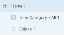 Perbedaan elemen yang berupa Group atau Frame dapat dilihat pada ikonnya. Ikon Group berupa persegi putus-putus seperti ini: