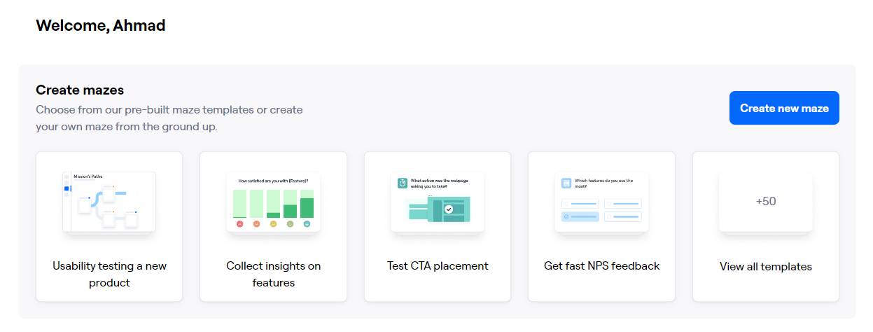 Silakan mendaftar pada halaman tersebut. Anda bisa menggunakan akun Google ataupun email dan password lain. Jika diminta untuk mengundang team, Anda bisa memilih I’ll do this later.Setelah akun Anda siap, mari kita berlatih untuk membuat Usability Study. Berikut langkah-langkahnya: