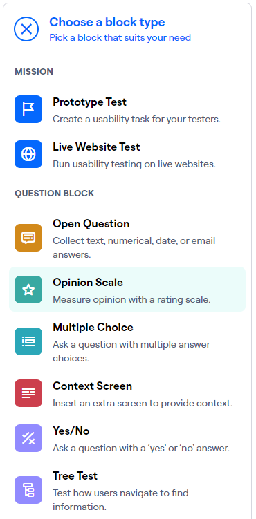 Langkah selanjutnya yaitu menambahkan blok baru untuk memberikan survei dengan cara klik tombol Add block dan pilih Opinion Scale.