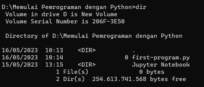 Catatan: sesuaikan “<nama file>” dengan nama file Python yang telah Anda buat.