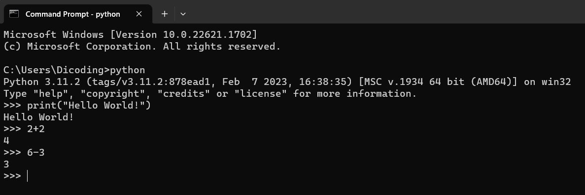 Mode kode interaktif memungkinkan Anda menjalankan kode Python hanya berbasis terminal/command prompt. Mode ini biasanya digunakan para programmer untuk bereksplorasi dan menjalankan dua hingga tiga baris kode saja. Pastikan Anda telah menginstal Python ketika ingin menggunakan kode interaktif.