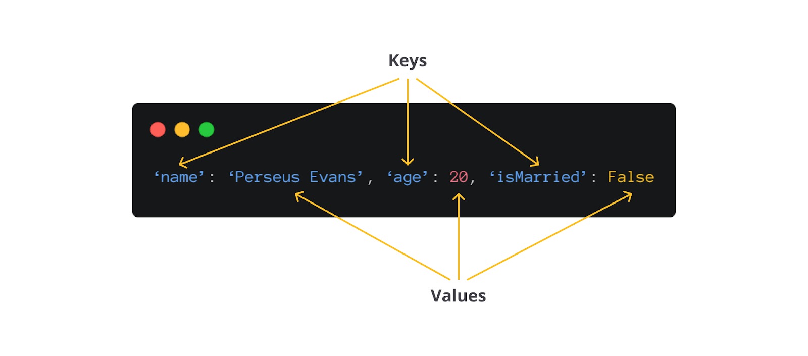 Dictionary pada Python merupakan kumpulan pasangan key-value yang bersifat tidak berurutan. Dictionary dapat digunakan untuk menyimpan data kecil hingga besar. Pada Python, dictionary didefinisikan dengan kurawal dan tambahan definisi berikut.- Setiap elemen pasangan key-value dipisahkan dengan koma (,).