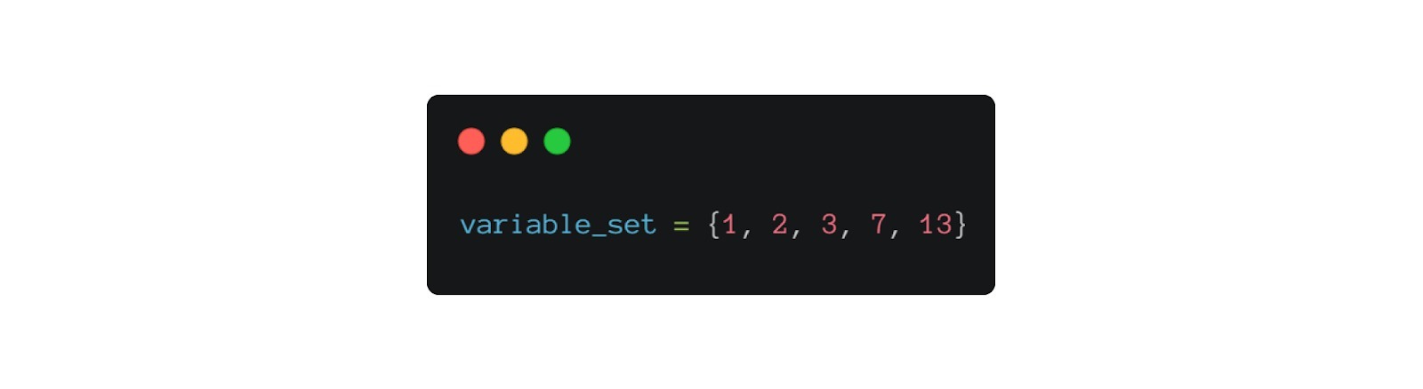 Set adalah kumpulan item bersifat unik, tanpa urutan (unordered collection), dan dapat diinisialisasikan dengan kurawal “” di mana setiap elemennya dipisahkan dengan koma. Tidak sama seperti list, dalam set kita tidak bisa melakukan indeksing karena set tidak memiliki indeks. Hal ini merujuk pada definisi nya yang menyatakan bahwa set merupakan kumpulan item tanpa urutan. Perhatikan kode di bawah ini.