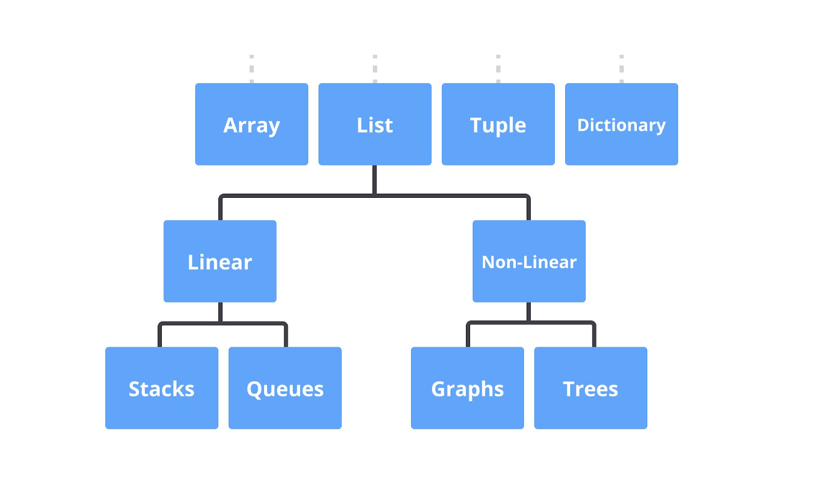 Perlu diketahui oleh Anda, array bukan hanya sebuah tipe data, melainkan salah satu tipe struktur data berjenis linear. Array merupakan kata dalam bahasa Inggris yang jika diterjemahkan ke bahasa Indonesia memiliki arti “sebuah kelompok besar yang terdiri dari beberapa hal atau orang”. Arti ini mirip dengan array atau tipe data list dalam Python, sebuah kelompok besar yang terdiri dari beberapa nilai atau data. Lalu, apa arti dari struktur data itu sendiri?