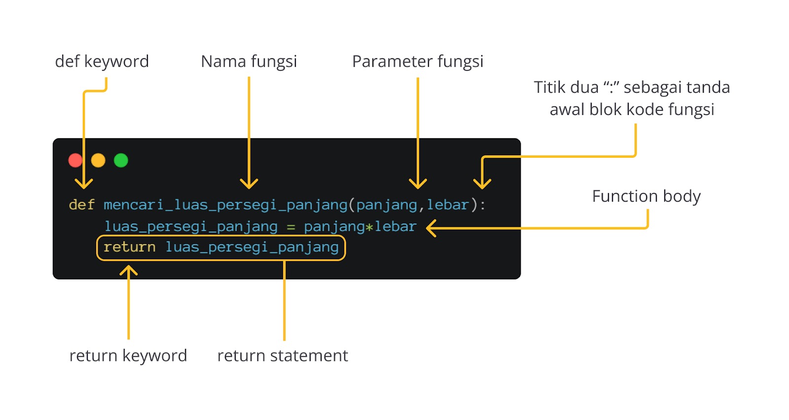 Fungsi yang kita buat sebelumnya terdiri dari beberapa elemen, yakni berikut.