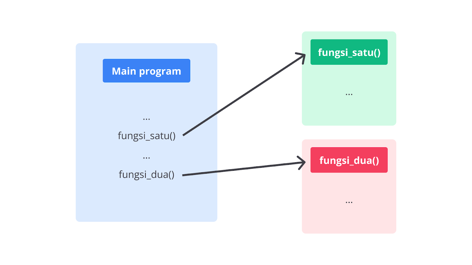 Ketika membuat kode program yang kompleks, Anda bisa membagi setiap programnya menjadi bagian-bagian kecil dengan mendefinisikan fungsi, dan di dalamnya setiap fungsi dapat dipanggil sebagai satu baris atau ekspresi dalam program utama.